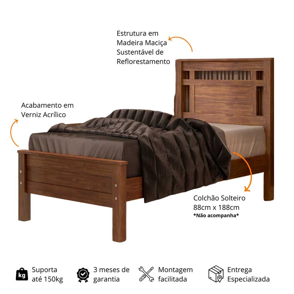 Ficha Técnica da Cama Solteiro Parma de Madeira Maciça 88cm: