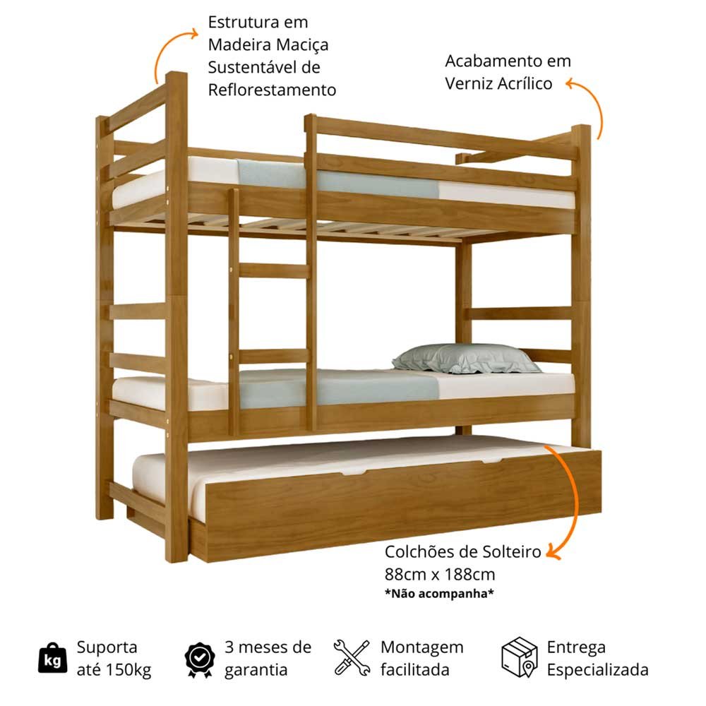 Acabamento: Verniz Acetinado (valoriza os veios da madeira e protege contra umidade e desgaste).